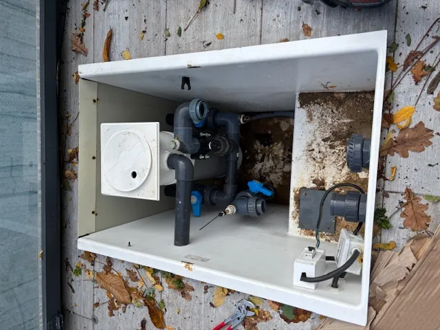 changement complet d'un systeme de filtration de piscines pour un client sur le secteur royannais . pompe et filtre a sable complet et supression de la filtration en bout du bassin ...